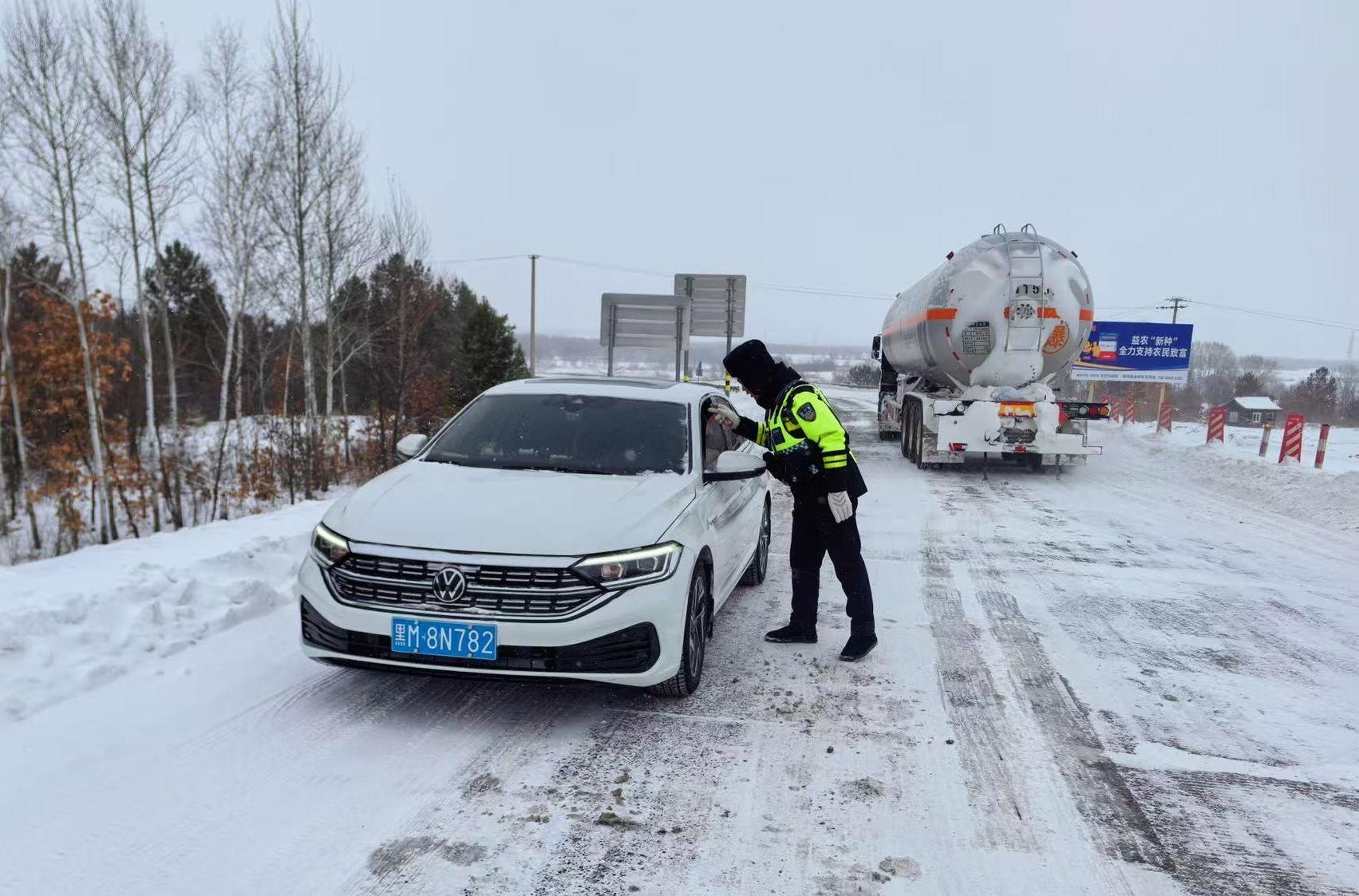 五大連池市公安局反恐與交巡特警大隊(duì)筑牢農(nóng)村冬季道路交通安全防線