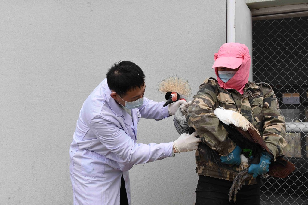 動物醫(yī)生為園內(nèi)鳥類進(jìn)行體檢