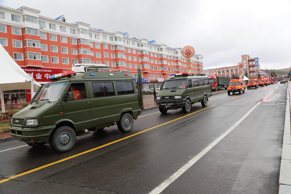 9時(shí),反思活動(dòng)正式開(kāi)始。林業(yè)局處級(jí)領(lǐng)導(dǎo)與職工群眾鄭重地在在“牢記歷史 汲取教訓(xùn) 振奮精神 開(kāi)拓進(jìn)取 建設(shè)美麗藍(lán)莓小鎮(zhèn)”宣傳條幅上,鄭重地簽上了自己的名字。并舉行了聲勢(shì)浩大的人員游行、車輛游行。由運(yùn)兵車、運(yùn)兵車、人工增雨車等26臺(tái)特種車輛,拉響警報(bào),緊跟在由森林消防大隊(duì)組成的100余人步行方陣后,他們身穿防火戰(zhàn)斗服,手舉寫有“‘五?六’反思”巨型防火宣傳牌和防火宣傳彩旗,尤其是手執(zhí)高速渦流噴射滅火機(jī)、脈沖槍、斯蒂爾風(fēng)力滅火機(jī)的隊(duì)員,邁著整齊的步伐,喊著響亮的口號(hào),立即吸引了過(guò)往的居民的注意,成為最亮眼的“明星”。