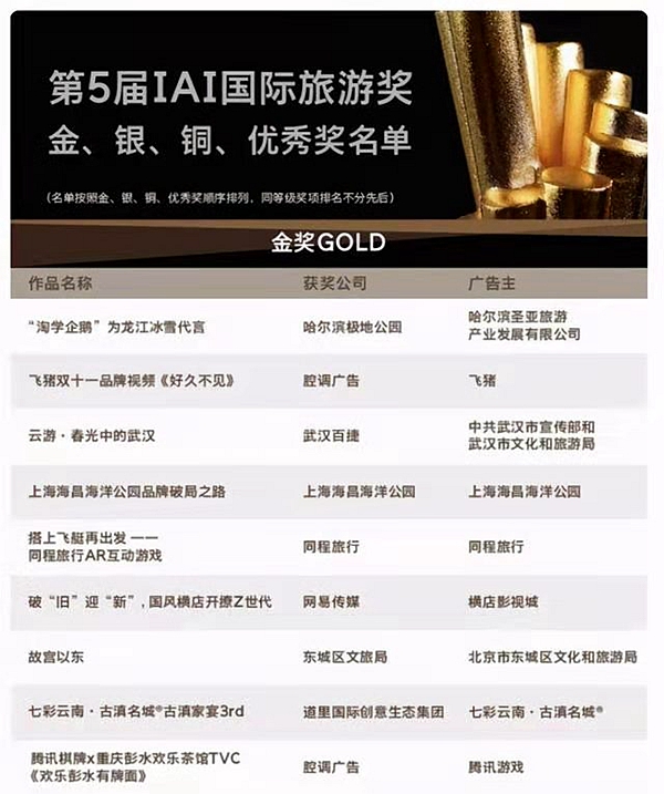 據(jù)了解,IAI國際旅游獎是知名的綜合性廣告與品牌營銷賽事評選,是國際化的旅游營銷及行業(yè)運(yùn)營評選活動。國內(nèi)眾多營銷及廣告類重量級機(jī)構(gòu)參與角逐,此次組委會共收到779家公司報送的3083件作品及案例,由270多位來自各領(lǐng)域的專家組成的終審團(tuán)進(jìn)行評審。