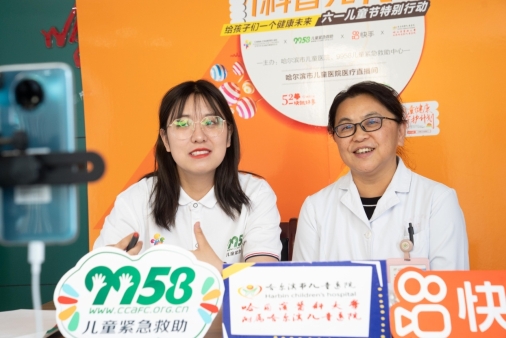 直播活動結(jié)束之后,9958工作人員與快手平臺志愿者為哈爾濱市兒童醫(yī)院血液內(nèi)科病房的白血病患兒們發(fā)放9958與快手平臺合作的“兒童健康守護(hù)計劃”六一節(jié)兒童大禮包。
