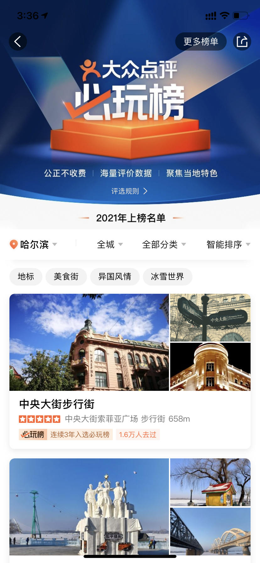 龍頭新聞訊(記者孫思琪)日前,大眾點評發(fā)布2021年“必住榜”“必玩榜”,全國45個城市共計986家酒店、939個玩樂目的地最終上榜。哈爾濱16個玩樂目的地入選“必玩榜”。