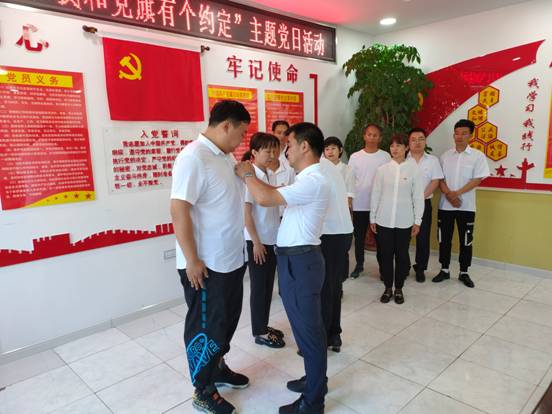 在馬林林場分會(huì)場,2名老黨員正在為預(yù)備黨員佩戴黨徽,這光榮的儀式對(duì)于新黨員來說是一種榮譽(yù)、一種激勵(lì)、一種鞭策,更是中國共產(chǎn)黨人精神的傳承。
