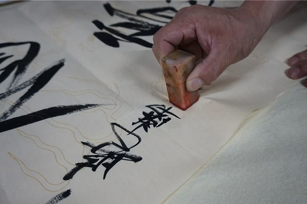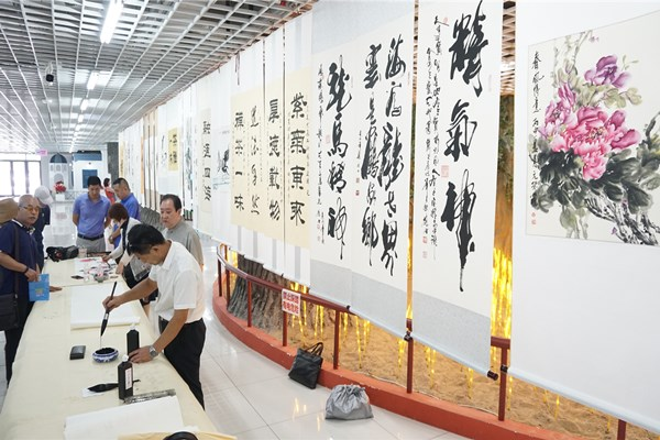 挽袖、研墨、調(diào)色、揮毫,書畫家們進(jìn)行現(xiàn)場(chǎng)書畫創(chuàng)作并交流創(chuàng)作心得。以書言志、以畫寄情,一幅幅極富感染力的書法、繪畫作品,抒發(fā)了對(duì)黨的敬愛之情和對(duì)祖國(guó)的美好祝愿?;顒?dòng)現(xiàn)場(chǎng)共展出書畫作品百余件。