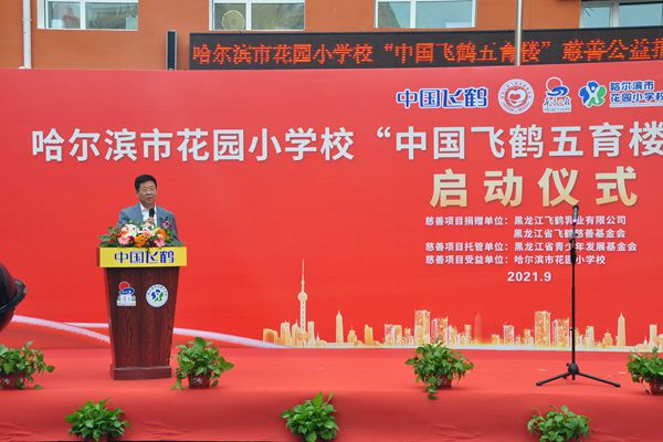 飛鶴乳業(yè)黨委書(shū)記、飛鶴慈善基金會(huì)理事長(zhǎng)朱天龍在啟動(dòng)儀式上說(shuō),在中秋國(guó)慶即將到來(lái)之際,我們滿(mǎn)懷喜悅的心情,在百年名校哈爾濱市花園小學(xué)校舉行“中國(guó)飛鶴五育樓”公益慈善助教項(xiàng)目啟動(dòng)儀式,這是飛鶴乳業(yè)履行社會(huì)責(zé)任、情系教育事業(yè)的又一項(xiàng)助教工程。在黑龍江省貫徹落實(shí)黨中央“雙減”政策,深入推進(jìn)五育并舉,促進(jìn)學(xué)生德智體美勞全面發(fā)展的重要時(shí)期。飛鶴向哈爾濱市花園小學(xué)捐贈(zèng)625萬(wàn)元,用于花園小學(xué)“五育樓”項(xiàng)目改造,這是一項(xiàng)利在當(dāng)代,功在千秋的公益慈善助教項(xiàng)目,旨在更好地優(yōu)化我省基礎(chǔ)教育教師學(xué)習(xí)培訓(xùn)環(huán)境,為花園小學(xué)教學(xué)提供更好的辦學(xué)條件,也是助力黑龍江省基礎(chǔ)教育的改革。省教育廳副廳長(zhǎng)姜同河、團(tuán)省委副書(shū)記張濤對(duì)飛鶴乳業(yè)的慈善助教善舉給予充分的肯定和贊許。花園小學(xué)校長(zhǎng)曹永鳴代表學(xué)校的孩子們向飛鶴乳業(yè)的慈善捐助表達(dá)深深的謝意!