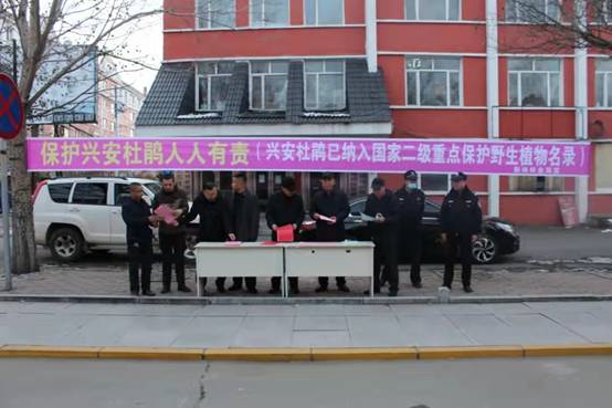 會(huì)后,所有與會(huì)人員參加了由森林資源管理科舉辦的“保護(hù)野生興安杜鵑人人有責(zé)”宣傳活動(dòng),對(duì)快遞公司、山產(chǎn)品店、檢查站、配貨站、市場(chǎng)及過(guò)往車輛進(jìn)行宣傳,并呼吁經(jīng)營(yíng)業(yè)主參與到保護(hù)野生興安杜鵑行動(dòng)中來(lái),不收購(gòu)、不運(yùn)輸、不銷售野生興安杜鵑,堅(jiān)決把牢物流運(yùn)輸關(guān)口。