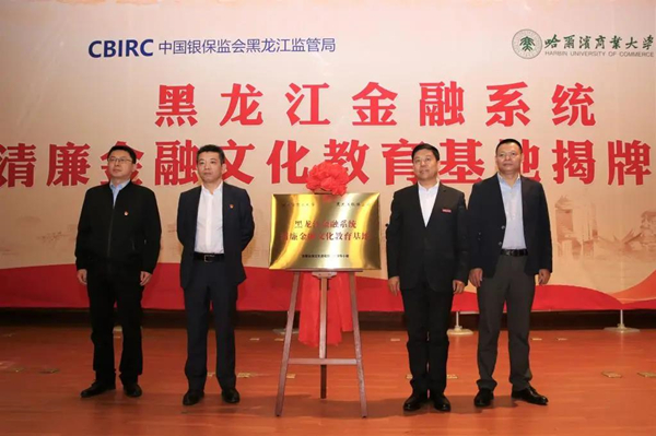 隨后,中國銀保監(jiān)會(huì)黑龍江監(jiān)管局黨委書記、局長王柱,哈商大黨委書記孫先民共同為黑龍江金融系統(tǒng)清廉金融文化教育基地揭牌,標(biāo)志著黑龍江金融系統(tǒng)首個(gè)清廉金融文化教育基地的正式成立,清廉金融文化進(jìn)校園活動(dòng)正式啟動(dòng)。