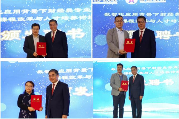 陳西峰為山東財(cái)經(jīng)大學(xué)會(huì)計(jì)學(xué)院院長(zhǎng)王愛國(guó)教授、華僑大學(xué)工商管理學(xué)院博士生導(dǎo)師楊洪濤教授、哈爾濱工程大學(xué)經(jīng)濟(jì)管理學(xué)院博士生導(dǎo)師楊忠海教授頒發(fā)客座教授聘書,為財(cái)智未來(北京)教育科技有限公司總監(jiān)聶鑫、中聯(lián)集團(tuán)教育科技有限公司產(chǎn)教融合事業(yè)部總監(jiān)侯劉成頒發(fā)企業(yè)導(dǎo)師聘書。