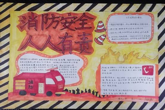 此次活動的開展,不僅增強了學生消防安全意識,還提高了學生對火災的應(yīng)急處理能力,通過學生們參與手抄報制作,學習消防安全知識活動,再次提高學生對消防安全的重視程度。