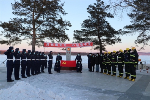 呼瑪縣素有紅色邊疆的美譽(yù),共建聯(lián)盟前往呼瑪縣江邊第173號(hào)界碑,在莊嚴(yán)的黨旗和界碑下,呼瑪縣森林消防大隊(duì)黨委書(shū)記苗亮亮帶領(lǐng)全體黨員同志重溫了入黨誓詞,舉行集體宣誓儀式,旨在進(jìn)一步強(qiáng)化廣大應(yīng)急人的政治意識(shí),增強(qiáng)黨性觀念,筑牢政治忠誠(chéng),永葆紅色氣質(zhì)。