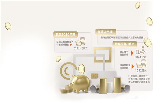 證券出借業(yè)務俗稱“融券”,是境內(nèi)外資本市場提高二級市場流動性的常見交易制度,發(fā)展較為成熟。截至2020年末,全球證券借貸業(yè)務存量規(guī)模已達2.3萬億歐元。在境內(nèi)市場,債券出借和轉(zhuǎn)融通證券出借業(yè)務發(fā)展較為迅速,截至今年9月末,境內(nèi)債券借貸規(guī)模8041億元,境內(nèi)轉(zhuǎn)融通出借余額1692億元,社?;?、商業(yè)銀行、證券公司、公募基金等市場主體均已獲準參與。
