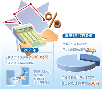 個券轉(zhuǎn)股溢價率也在不斷攀升。同花順iFinD數(shù)據(jù)顯示,截至1月17日收盤,目前371只可轉(zhuǎn)債中,平均轉(zhuǎn)股溢價率為33%;同時,可轉(zhuǎn)債面值均已站上百元,超過200元的可轉(zhuǎn)債逾30只。專家表示,當前市場流動性較為充沛,機構轉(zhuǎn)債配置需求旺盛,支撐可轉(zhuǎn)債市場景氣度。同時,在資管新規(guī)背景下,銀行理財加速凈值化轉(zhuǎn)型,部分理財資金進入轉(zhuǎn)債市場,進一步推升個股溢價率。
