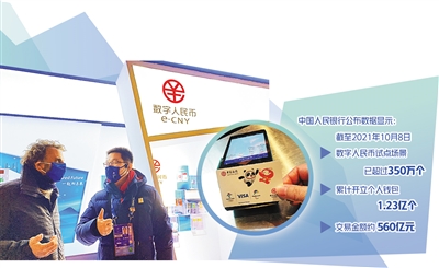 2017年起,人民銀行與商業(yè)銀行、互聯(lián)網公司等合作,共同進行數(shù)字人民幣研發(fā)。2019年末,數(shù)字人民幣開始試點,目前,人民銀行已經在深圳、蘇州、雄安、成都、上海、海南、長沙、西安、青島、大連等地和2022年北京冬奧會場景開展數(shù)字人民幣試點。中國人民銀行公布的數(shù)據顯示,截至2021年10月8日,數(shù)字人民幣試點場景已超過350萬個,累計開立個人錢包1.23億個,交易金額約560億元。