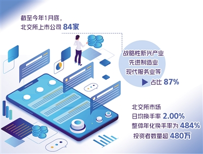 2021年11月15日,北京證券交易所正式揭牌開市,截至目前已滿3個月。記者日前獲悉,截至2022年1月底,北交所上市公司84家,戰(zhàn)略性新興產業(yè)、先進制造業(yè)、現代服務業(yè)等占比87%;新三板創(chuàng)新層掛牌公司1221家、基礎層掛牌公司5694家,呈現出“金字塔”結構。目前,符合北交所上市財務條件的掛牌公司超過千家。
