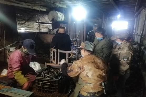 新林林業(yè)局塔源林場黨員志愿者幫助黑木耳養(yǎng)殖戶做菌上料(董淑玲 攝)