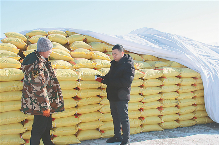 日前,在北大荒集團趙光農(nóng)場有限公司第六管理區(qū)曬場上,幾個人正在對碼放整齊的化肥進行盤點,其中一個人認(rèn)真地做著記錄,他就是農(nóng)場第六管理區(qū)種植戶劉明亮。