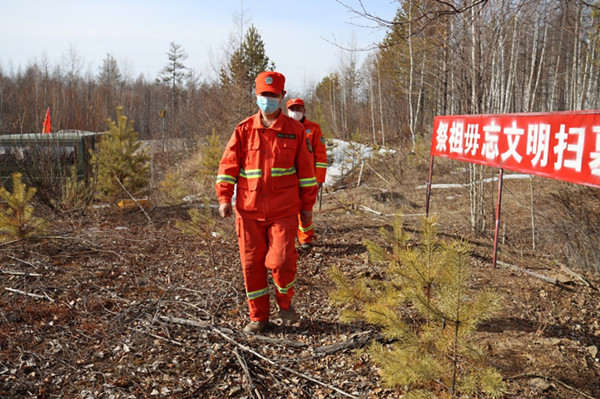 古蓮河露天煤礦防火保衛(wèi)中心職工在火災(zāi)易發(fā)地段進(jìn)行巡邏(李云田 攝)