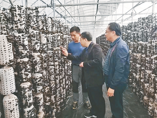 科研人員對黑木耳規(guī)?;a(chǎn)進(jìn)行技術(shù)指導(dǎo)。
