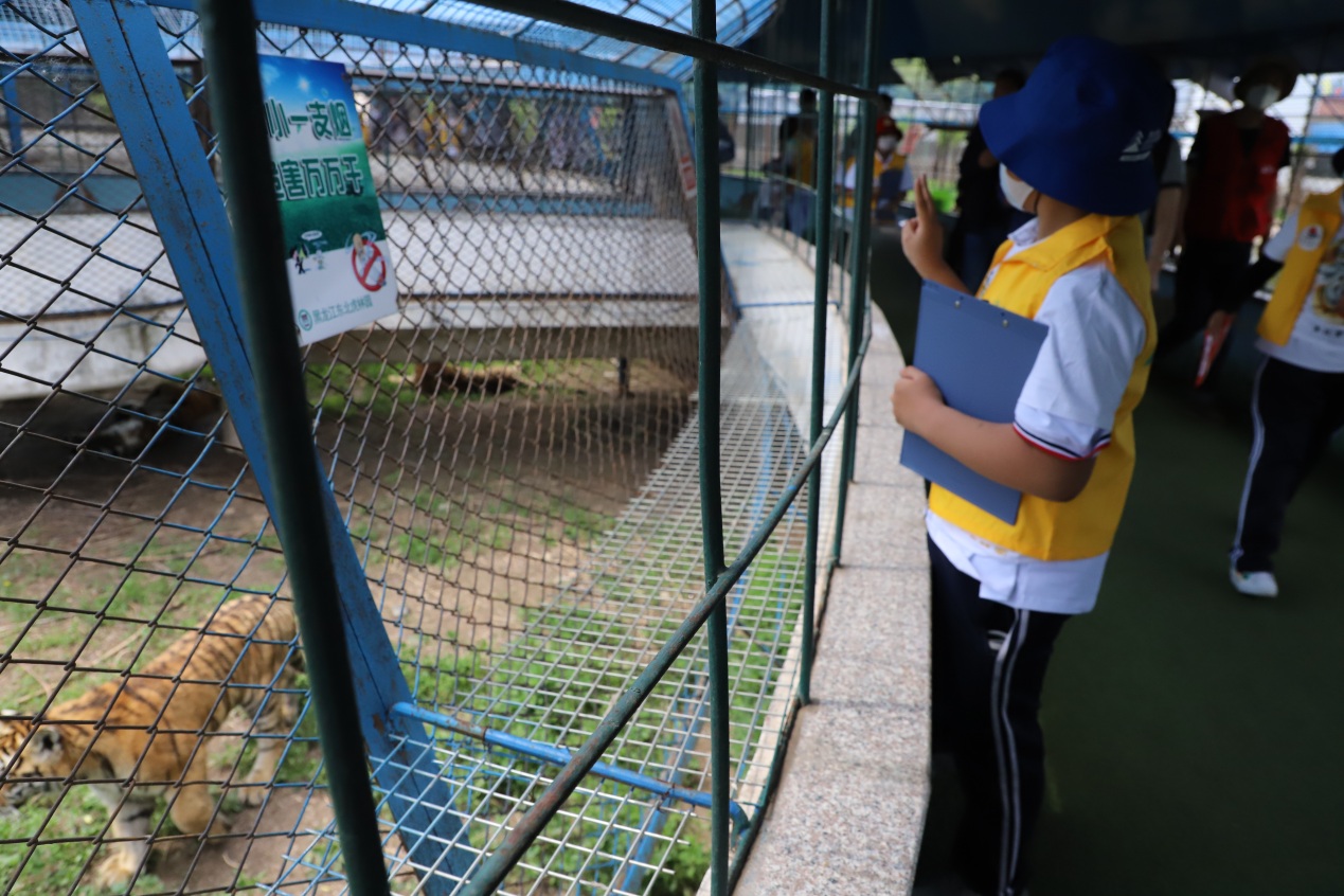 在東北虎林園工作人員的帶領(lǐng)下,小朋友們穿著統(tǒng)一的黃馬甲,手持研學游活動記錄單,充滿期待地走進東北虎林園,近距離觀察動物們的外貌特征、動作特點,細致聆聽工作人員的講解,認真記錄自己所看到的每一個細節(jié)、聽到的每一個知識,還有愛畫畫的小朋友畫下了自己親眼所見的老虎憨態(tài)可掬的樣子。