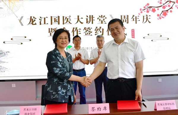 活動(dòng)現(xiàn)場(chǎng),黑龍江日?qǐng)?bào)報(bào)業(yè)集團(tuán)分別與黑龍江省中醫(yī)藥管理局、黑龍江省中醫(yī)藥科學(xué)院進(jìn)行了合作簽約。省中醫(yī)藥管理局黨組書記、局長(zhǎng)張曉峰說(shuō):黑龍江日?qǐng)?bào)報(bào)業(yè)集團(tuán)具有廣泛的社會(huì)影響力,我們將以框架協(xié)議的簽署為契機(jī),在中醫(yī)藥文化知識(shí)宣傳普及、中醫(yī)藥產(chǎn)業(yè)宣傳推介方面進(jìn)一步加深合作。省中醫(yī)藥科學(xué)院黨委書記、院長(zhǎng)陳宏在現(xiàn)場(chǎng)說(shuō):《龍江國(guó)醫(yī)大講堂》已成為我省中醫(yī)藥文化宣傳戰(zhàn)線上的知名品牌,我們將在多領(lǐng)域開(kāi)展更深層次、更高水平的合作,為我省中醫(yī)藥事業(yè)跨越式發(fā)展助推加力。