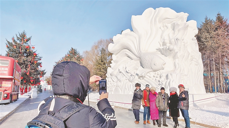 本報(bào)訊(記者 蔣國紅)“這個(gè)魚雕得太好看了,快給我拍張照!”在第35屆中國·哈爾濱太陽島國際雪雕藝術(shù)博覽會現(xiàn)場,游人或乘坐電瓶車,或徒步欣賞著美麗的雪塑盛宴。
