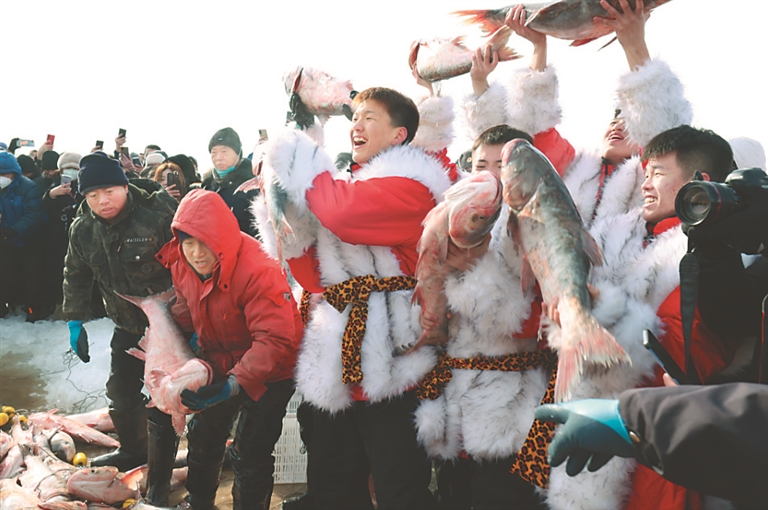 火熱的冬捕場面。