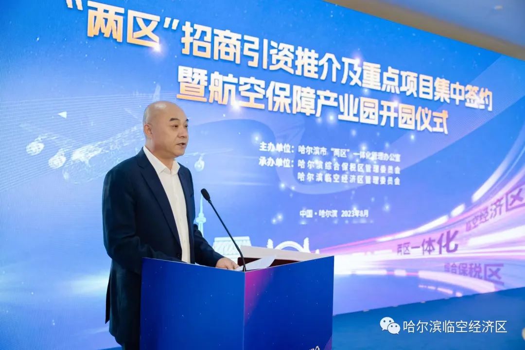 “兩區(qū)”管委會(huì)領(lǐng)導(dǎo)分別對(duì)哈爾濱綜合保稅區(qū)與哈爾濱臨空經(jīng)濟(jì)區(qū)重點(diǎn)園區(qū)、營(yíng)商環(huán)境、產(chǎn)業(yè)政策等特色優(yōu)勢(shì)作招商推介,誠(chéng)邀五湖四海的客商朋友來“兩區(qū)”投資興業(yè)、共商發(fā)展,吸引和促進(jìn)優(yōu)質(zhì)資源和高端要素匯聚“兩區(qū)”。哈爾濱臨空經(jīng)濟(jì)區(qū)航空保障產(chǎn)業(yè)園在全體來賓的見證下正式啟動(dòng),該園總建筑面積12萬(wàn)平方米,總投資5.6億元,重點(diǎn)發(fā)展航空總部經(jīng)濟(jì)、航空制造產(chǎn)業(yè)、航空物流產(chǎn)業(yè)、臨空制造產(chǎn)業(yè)以及航空服務(wù)、航空食品等產(chǎn)業(yè),致力打造為哈爾濱臨空經(jīng)濟(jì)區(qū)發(fā)展現(xiàn)代制造業(yè)的新名片,成為國(guó)內(nèi)知名的航空保障產(chǎn)業(yè)集群。