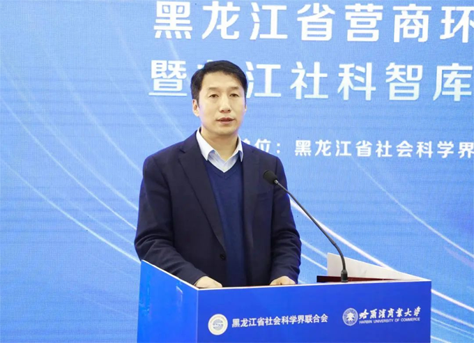 哈爾濱商業(yè)大學(xué)經(jīng)濟(jì)學(xué)院院長韓平主持龍江社科智庫論壇——“優(yōu)化營商環(huán)境 建設(shè)誠信龍江”主題論壇。