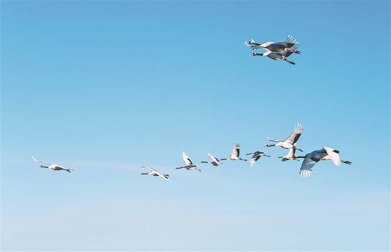 候鳥(niǎo)成隊(duì)飛翔在林區(qū)上空。圖片由受訪單位提供