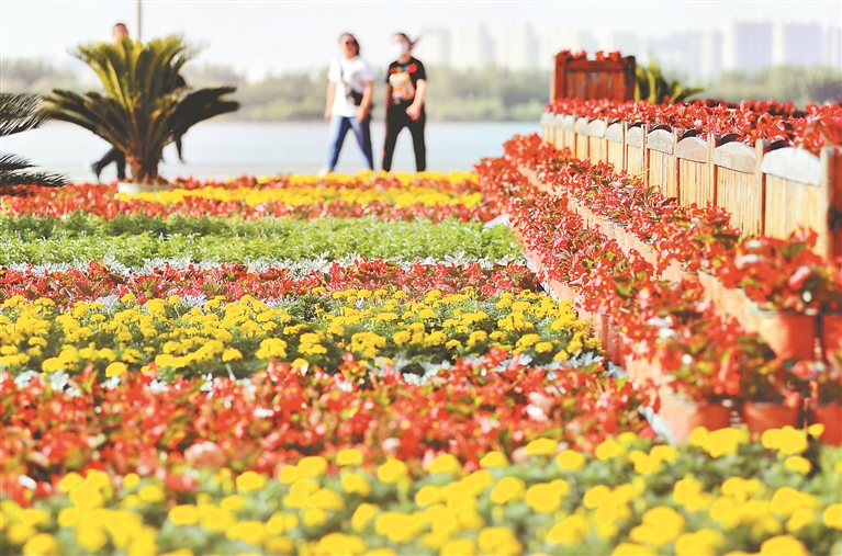 5月21日,哈爾濱市道外區(qū)江畔景陽廣場上,數(shù)千株五顏六色的花卉構(gòu)成了一座美麗的大花壇,有黃色的菊花、紅色的四季海棠、白色的雪葉蓮等,姹紫嫣紅,爭奇斗艷,將廣場裝點得分外美麗,吸引了許多市民、游客駐足觀賞拍照。