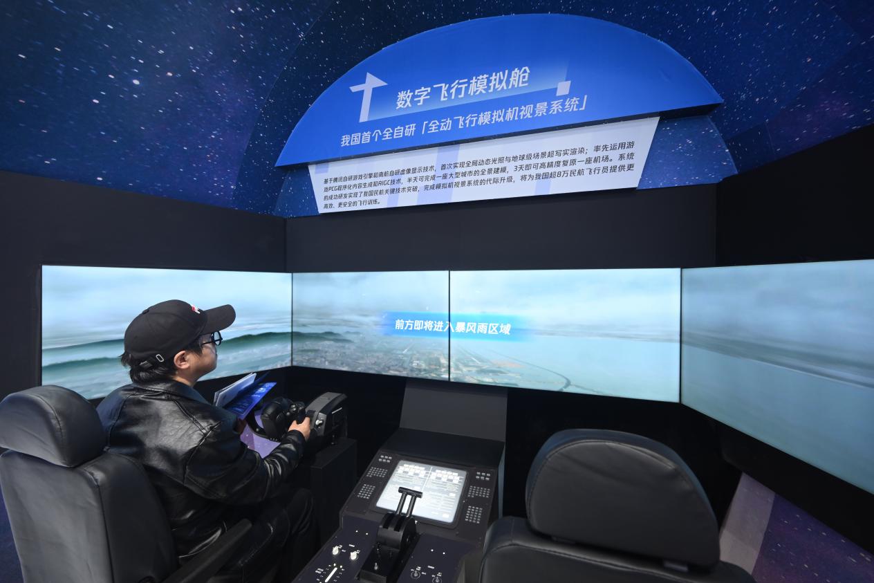 “只需要推動(dòng)操縱桿,就能操作系統(tǒng),體驗(yàn)民航飛行員第一視角下、擬真的訓(xùn)練場(chǎng)景……”在展區(qū)前方,由南航自研虛像顯示技術(shù)和騰訊自研游戲引擎技術(shù)共同打造的全動(dòng)飛行模擬機(jī)視景系統(tǒng),吸引眾多參觀者體驗(yàn)?;隍v訊自研游戲引擎,系統(tǒng)首次實(shí)現(xiàn)全局動(dòng)態(tài)光照與地球級(jí)場(chǎng)景超寫實(shí)渲染,多邊形生成面數(shù)較之前提升380倍、貼圖精細(xì)度提升100倍,助力實(shí)現(xiàn)我國民航關(guān)鍵技術(shù)突破。