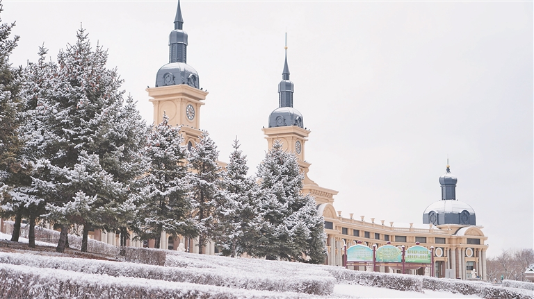 經(jīng)過一夜的降雪,27日,哈爾濱市的街頭、樹木、房頂、車頂都積了厚厚一層雪,整座城市變成了一個白色的童話世界。