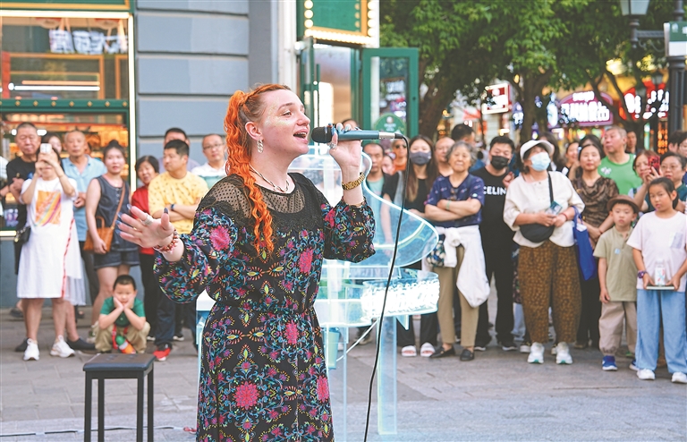 中央大街一隅,熱情洋溢的俄羅斯演員或奏響悠揚(yáng)的巴揚(yáng)樂(lè)曲,讓充滿(mǎn)異域風(fēng)情的旋律在空氣中流淌;或以靈動(dòng)的舞姿演繹俄羅斯文化,用熱情奔放的節(jié)奏點(diǎn)燃現(xiàn)場(chǎng)氣氛。市民和游客近距離感受俄羅斯文化的魅力。