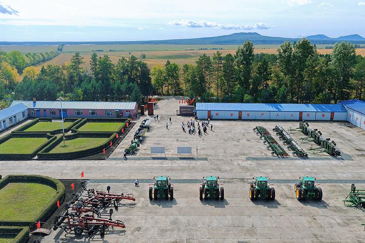 引龍河農(nóng)場構建了完善的農(nóng)機存放與裝備體系,設有一類農(nóng)機停放場 7 處、二類停放場 7 處、臨時停放場 5 處,總面積 10.8 萬平方米,可充分滿足農(nóng)機存放需求。全場農(nóng)機總動力達 4.18 萬千瓦,155 臺動力機車覆蓋“耕、種、管、收”全環(huán)節(jié),485 臺(套)農(nóng)機具嚴格落實“五凈、四不漏、六封閉、一完好”管護標準。