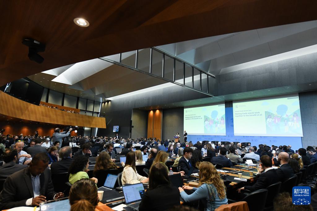 9月17日,在瑞士日內瓦世貿組織總部,參會者聆聽《2025世界貿易報告》發(fā)布會報告。新華社記者 連漪 攝