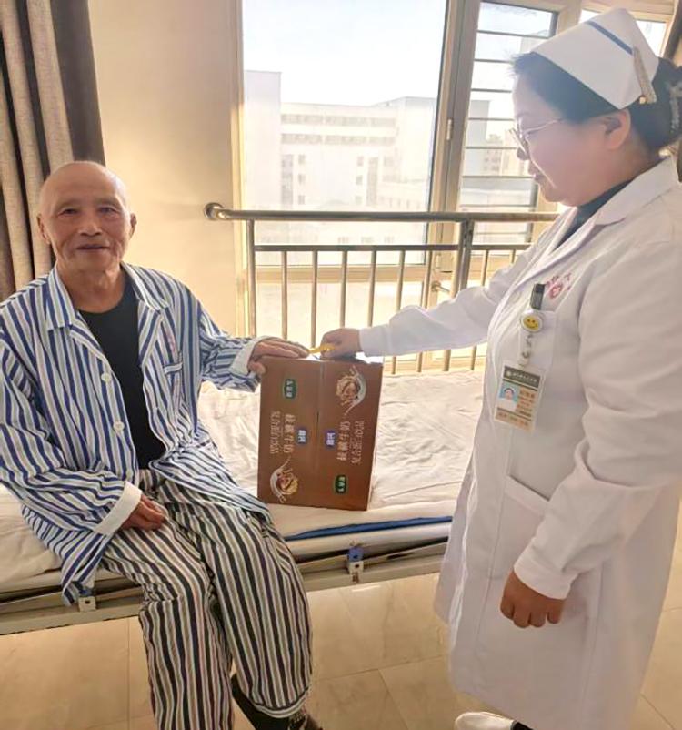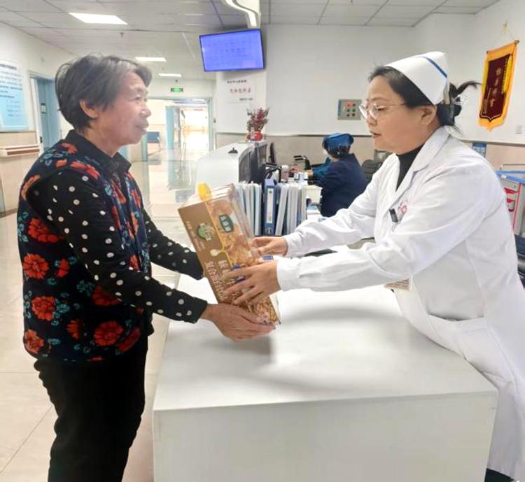 禮品雖小,情意濃重。開展活動期間,醫(yī)護人員們帶著精心準備的小禮品,走進每一位60歲以上老年患者的病房。這些小禮品雖然價格并不昂貴,但卻飽含著對患者的深深祝福。柔軟舒適的保暖襪,為患者在漸冷的霜降時節(jié)增添一份溫暖;營養(yǎng)豐富的滋補品,助力患者增強身體抵抗力;寓意吉祥的平安符,寄托著對患者早日康復的美好期許。當醫(yī)護人員將一份份小禮品送到患者手中時,患者們的臉上都洋溢著驚喜與感動的笑容,紛紛對科室的貼心關懷表示感謝?;颊邉⒁碳拥卣f:“在這個特殊的節(jié)日里,收到你們送的禮物,心里特別溫暖”。
