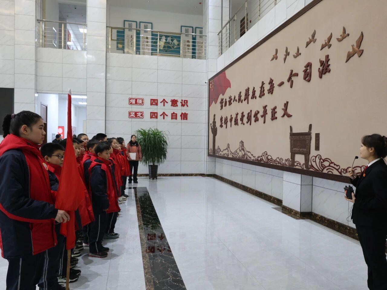 在法院工作人員的引導(dǎo)下,同學們依次參觀了體現(xiàn)司法便民的訴訟服務(wù)中心、充滿人文氣息的和合文化長廊、莊嚴肅穆的審判庭、弘揚清正之風的廉政文化長廊、傳承紅色基因的黨史教育室、展現(xiàn)干警英姿的體能訓(xùn)練中心以及書香彌漫的讀書學習室。