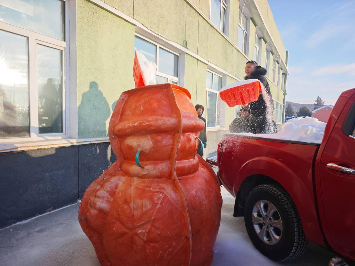林場職工正在堆雪人(李輝 攝)