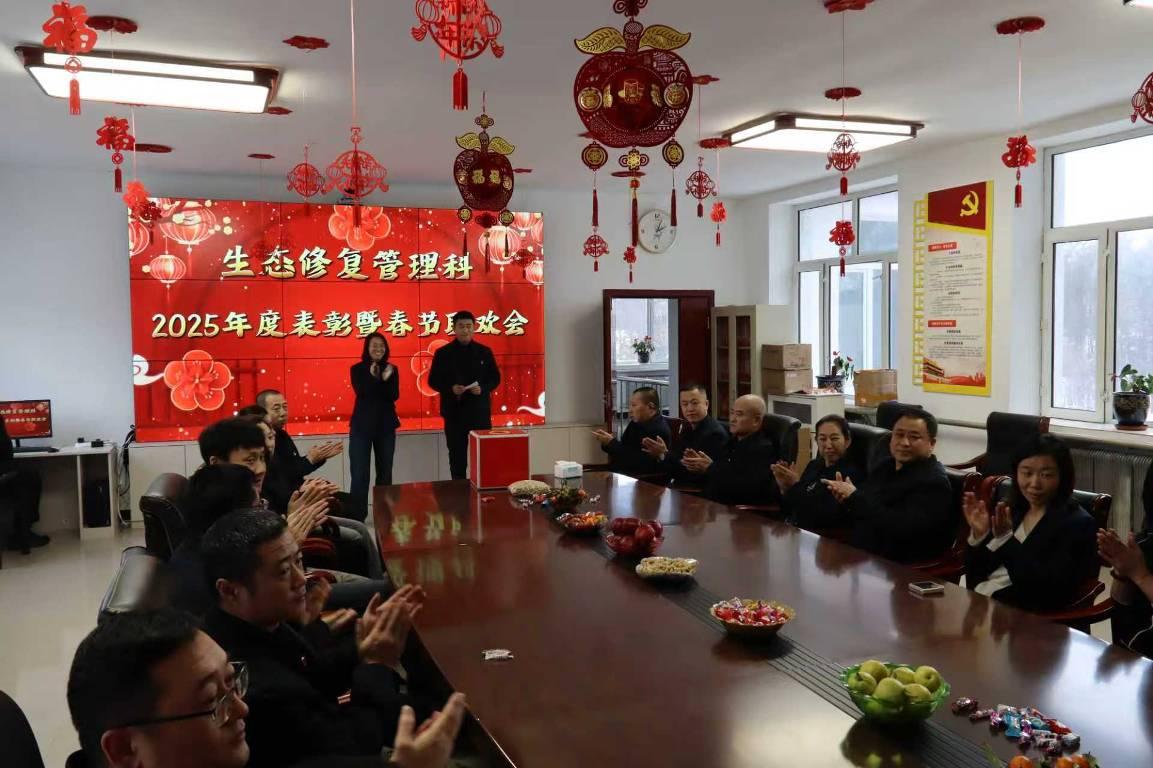 活動(dòng)在歡快的音樂(lè)中拉開帷幕。主持人深情回望2025年,這一年,科室全體同仁深耕生態(tài)修復(fù)一線,頂風(fēng)冒雨、攻堅(jiān)克難,圓滿完成各項(xiàng)工作任務(wù),用實(shí)干守護(hù)綠水青山,用堅(jiān)守詮釋生態(tài)人的初心使命。生態(tài)修復(fù)管理科科長(zhǎng)于召民為活動(dòng)致辭,既肯定了科室全體干部職工過(guò)去一年的辛勤付出,也為2026年工作指明方向、注入動(dòng)力,贏得全場(chǎng)陣陣掌聲。